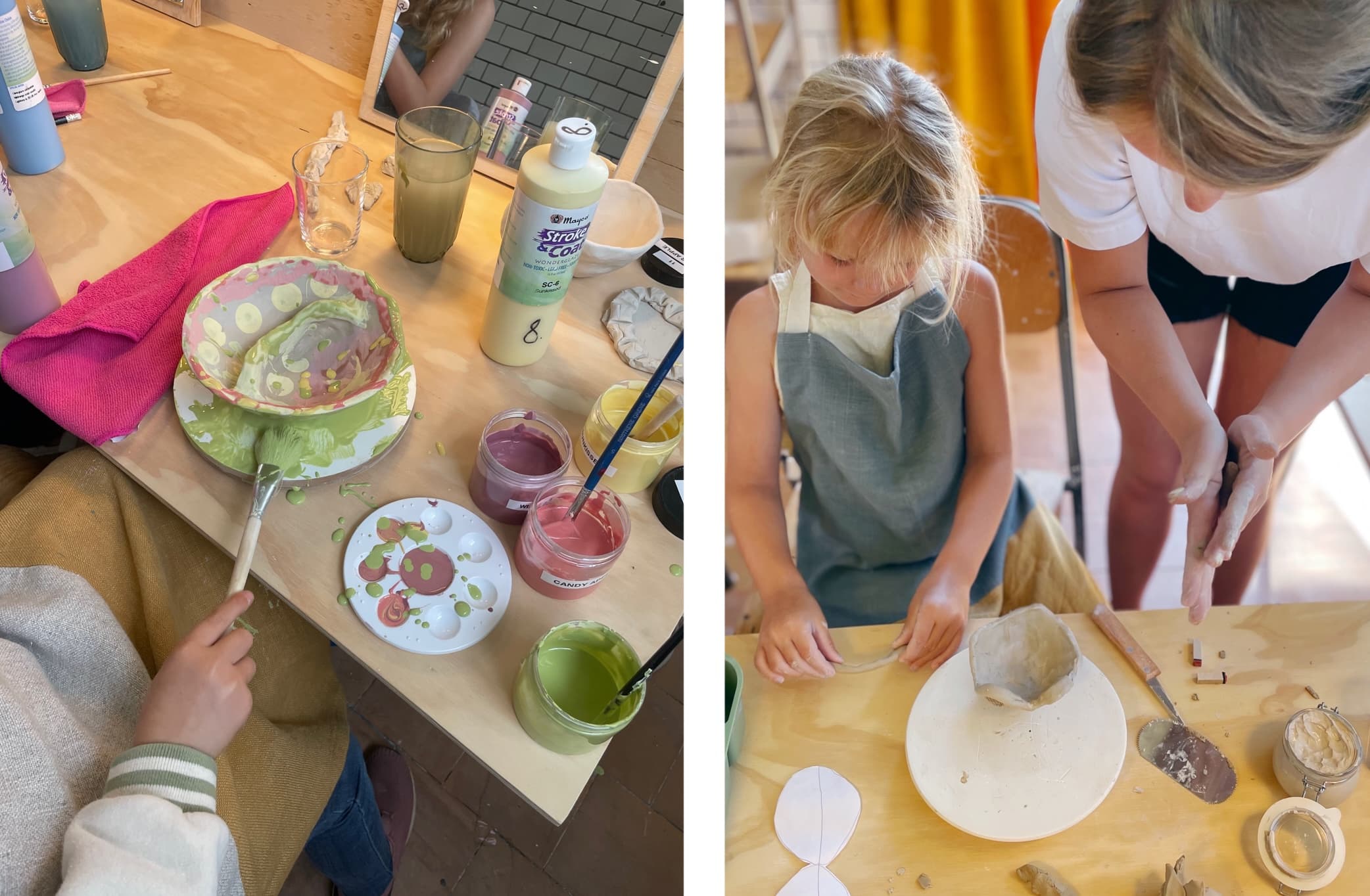 Välkommen till oss för att måla på keramik! Du väljer valfritt föremål i butiken att måla på, därefter slår du dig ner i verkstaden och sätter igång! Målningsworkshopen pågår så länge du vill, men max 2 timmar. Efter workshopen bränns föremålet i vår ugn, och är redo att hämtas ca 2 dagar senare. Vid behov kan de färdiga föremålen även skickas hem till er mot en fraktkostnad.